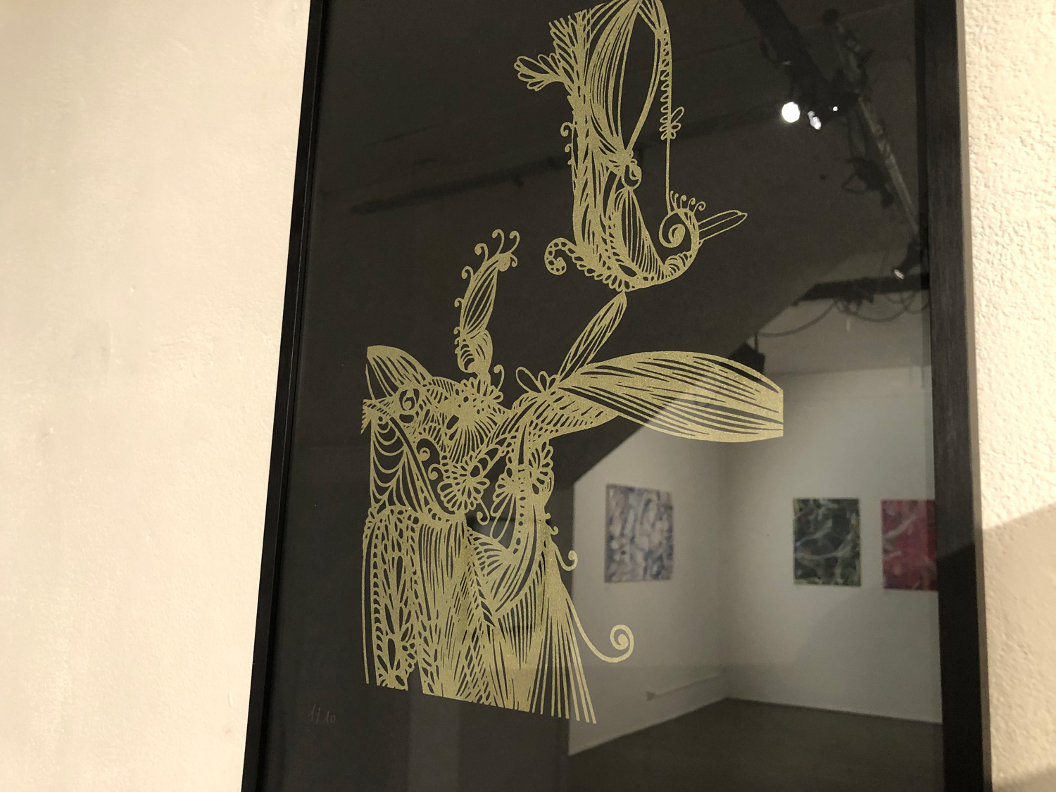 Les sérigraphies « Cocon » et « Les oiseaux » sont proposées dans trois variantes. Elles proviennent d’une série de douze œuvres originales réalisées les unes à la suite des autres par l’artiste, intitulées « Émanation ».